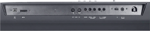 Connectiques : 2 outs 6,35 mm, sortie casque (1 x 3,5 mm), USB type B (MIDI Audio), IN/OUT MIDI, carte SD, 3 prises pédale